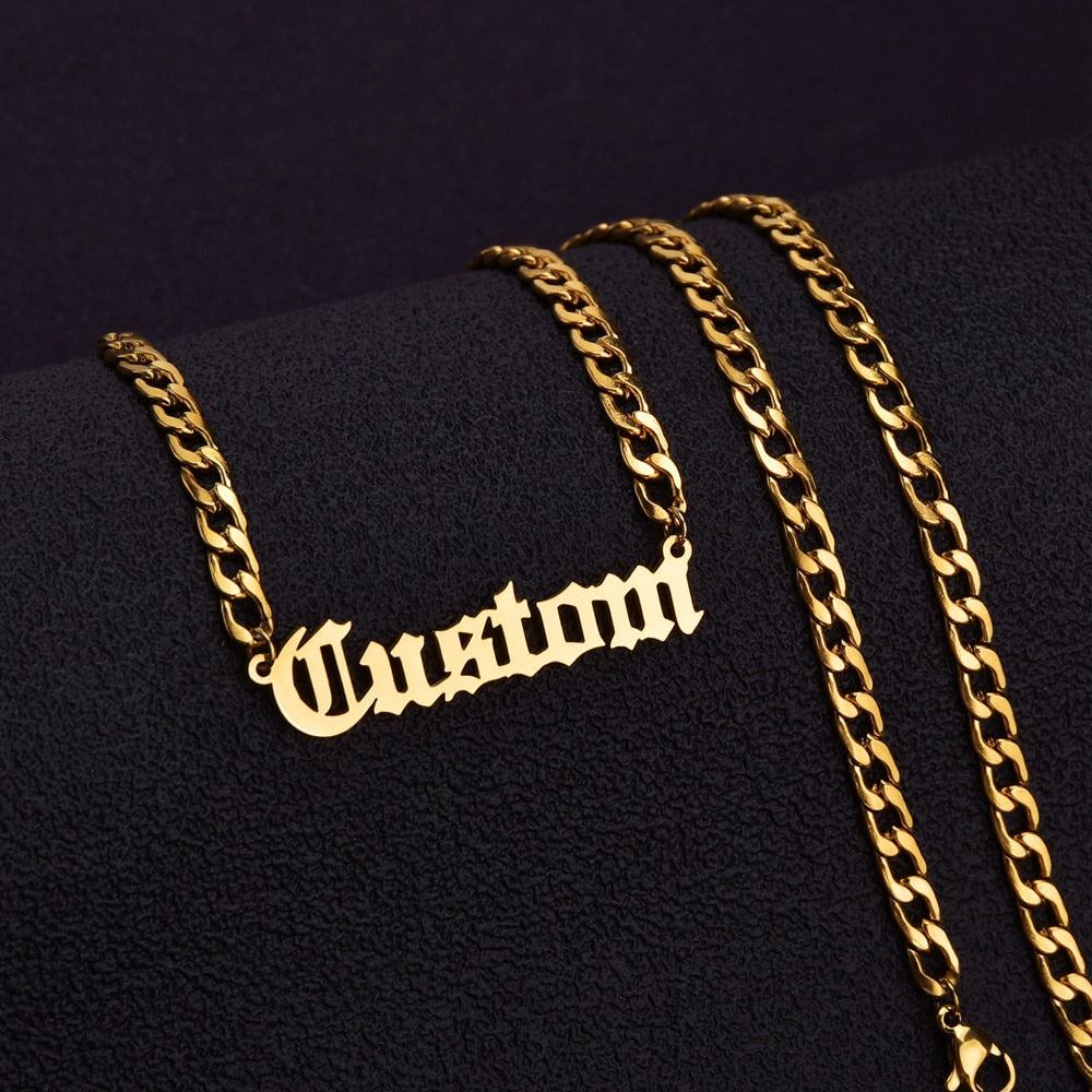 {Customized} Fashion Stainless Steel Name Necklace {Gold}